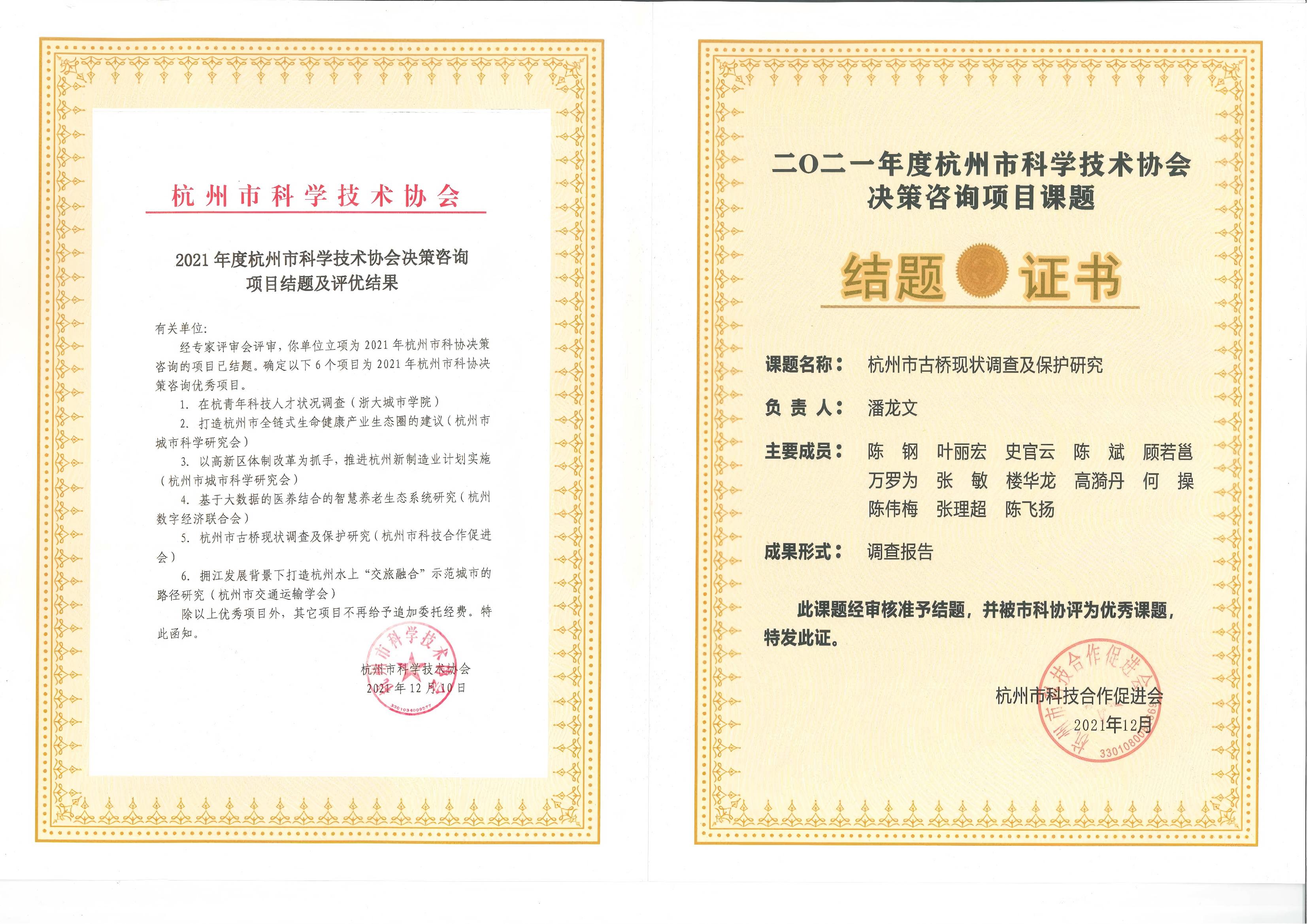 2021年度杭州市科学技术协会决策咨询项目课题优秀项目